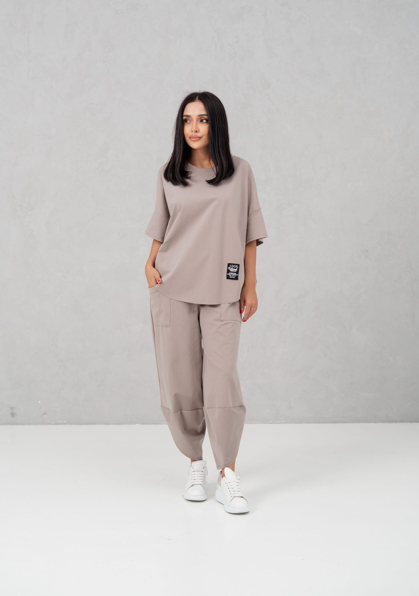 Setul este compus dintr-un tricou cu mânecă scurtă, croi lejer și pantaloni cu buzunare frontale, care adaugă o notă sport-urbană întregii ținute. Bumbacul de calitate superioară este moale, respirabil și plăcut la atingere, ideal pentru purtare zilnică.