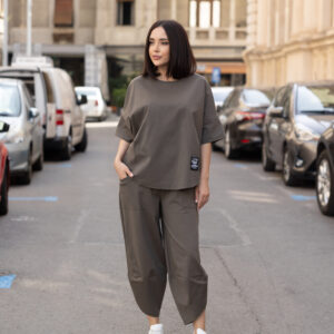 Redefinește confortul cu Kaida, un set versatil realizat din bumbac premium și fabricat în Italia. Cu un design modern și croi relaxat, casual, perfect pentru zilele aglomerate, plimbări sau momente de relaxare.