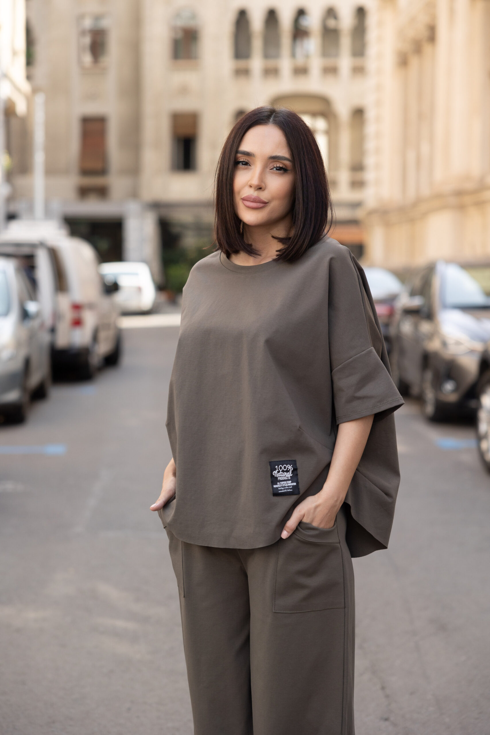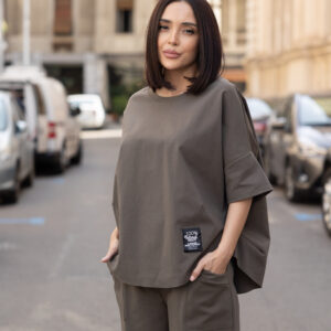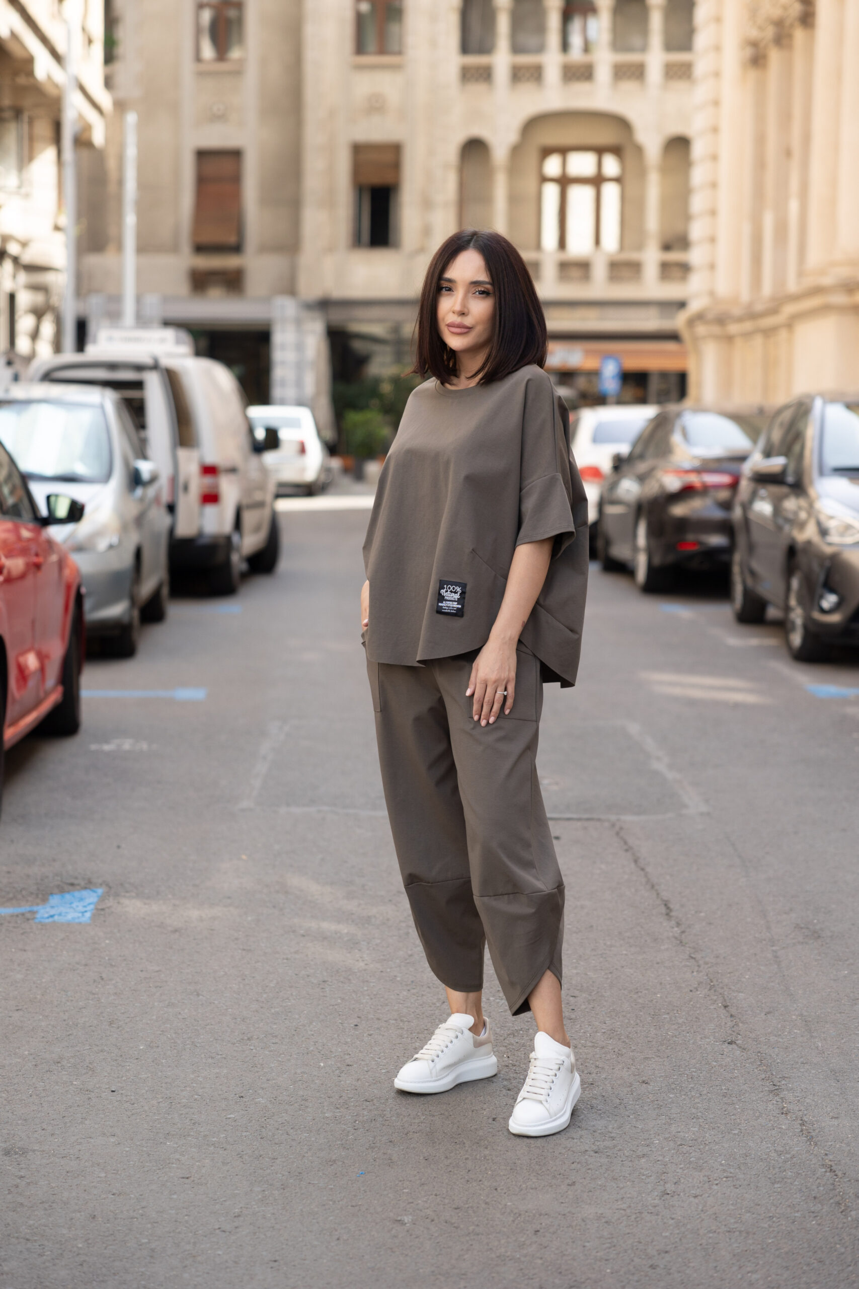 - Set 2 piese: bluză oversize + pantaloni trei sferturi